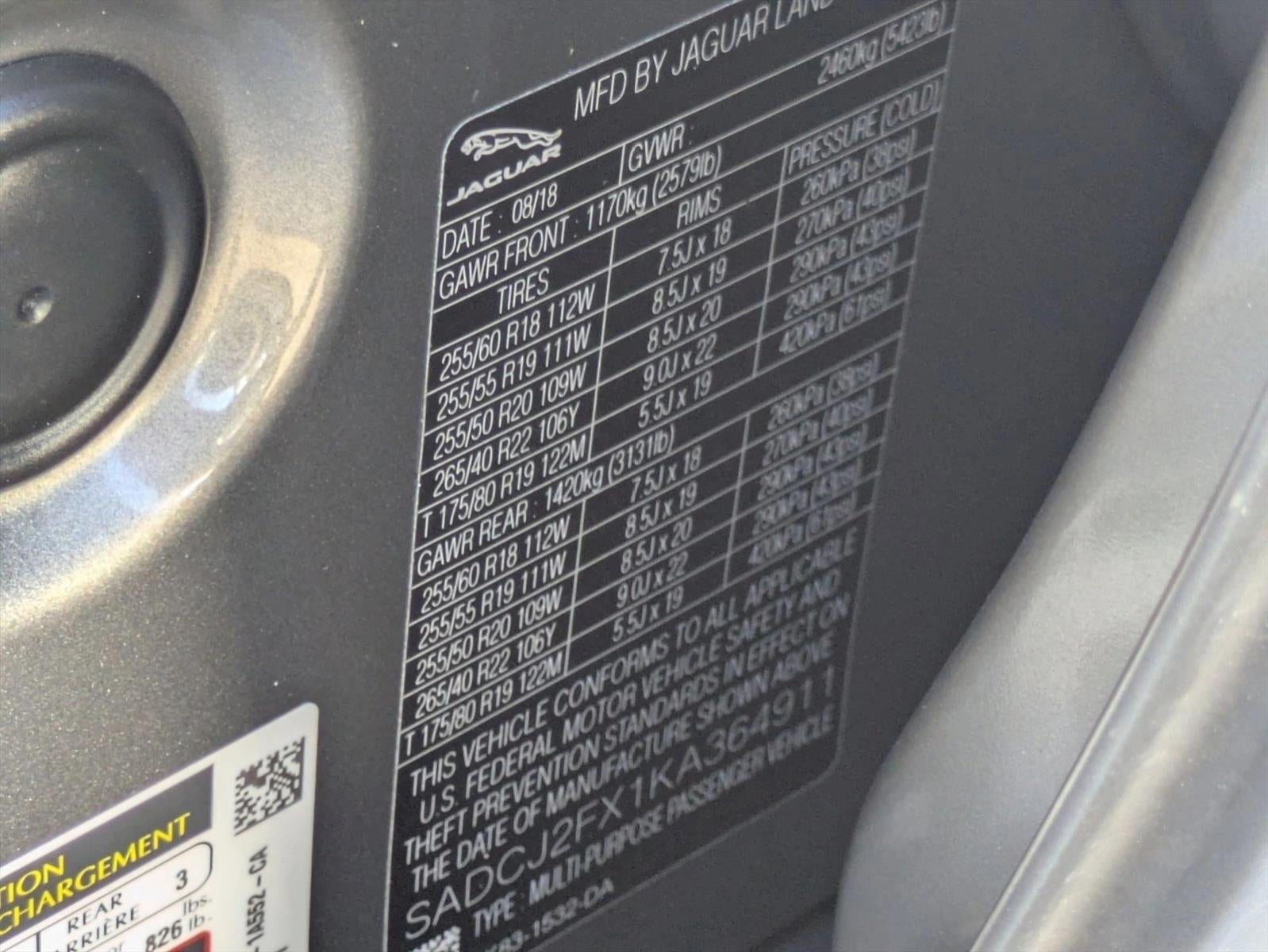 Thank you for visiting another one of Lexus of Clearwater's online listings! Please continue for more information on this 2019 Jaguar F-PACE 25t Premium with 66,619mi. This is a well kept ONE-OWNER Jaguar F-PACE 25t Premium with a full CARFAX history report. The F-PACE 25t Premium doesn't disappoint, and comes with all the quality and understated opulence buyers have come to expect from the respected Jaguar marque. A truly versatile SUV, this vehicle will please even the most discerning of buyers. Is it possible to fall in love with a vehicle? It is when your vehicle is as prestige as the Jaguar F-PACE. Enjoy the grip and control of AWD performance in this nicely equipped Jaguar F-PACE 25t Premium. With less than 66,619mi on this Jaguar F-PACE, you'll appreciate the practically showroom newness of this vehicle. Service records are included with the purchase of this well-maintained pre-owned vehicle. This pre-owned Jaguar F-PACE looks like new with a clean interior that's been well-kept.