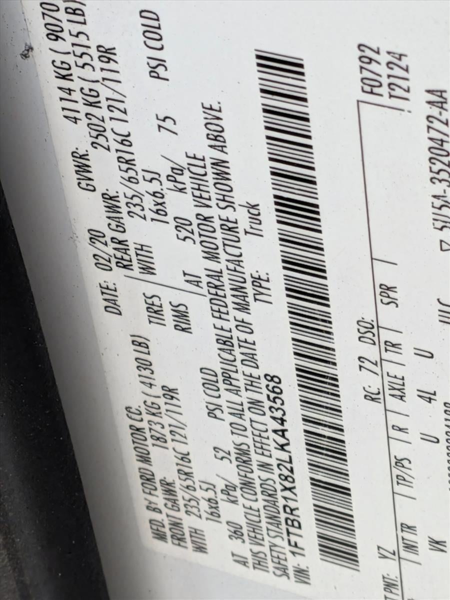 2020 Ford Transit Cargo Van T-250 148" Hi Rf 9070 GVWR RWD